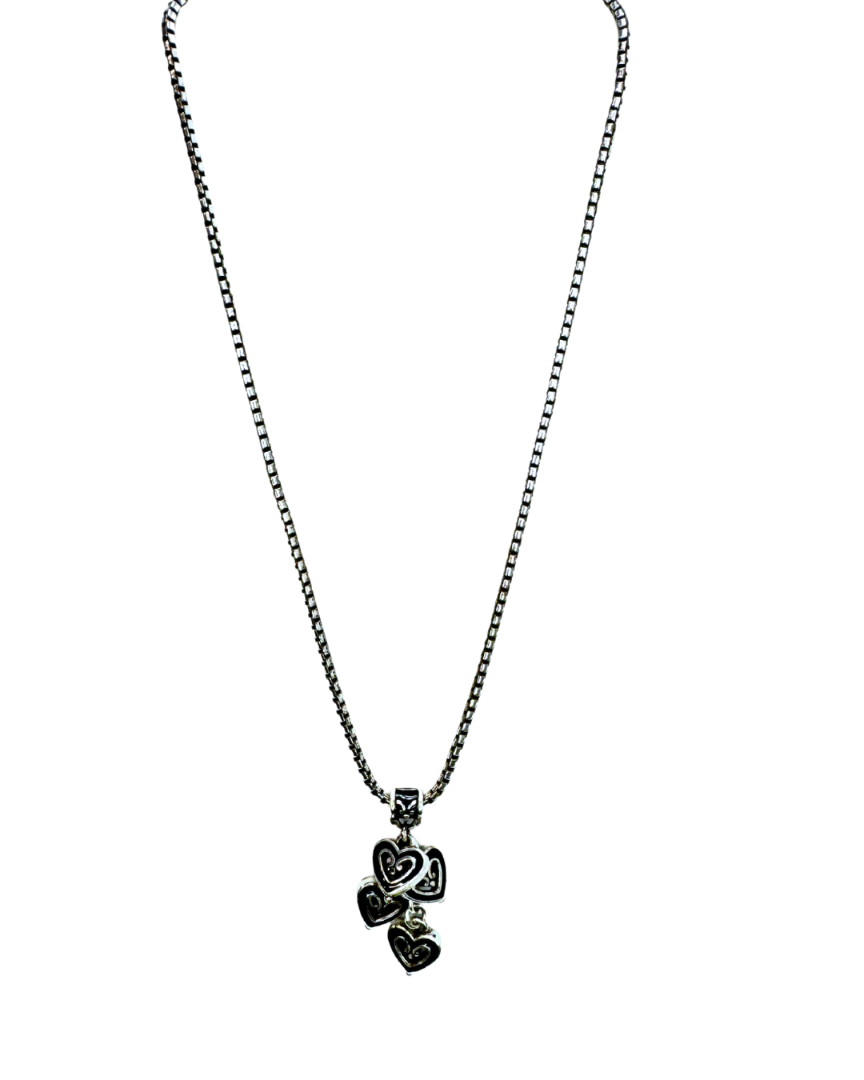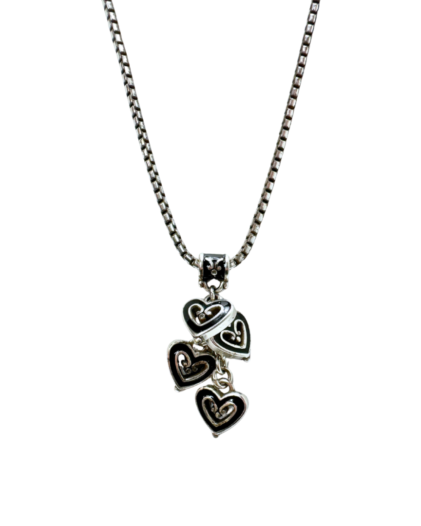 Brighton Silver Tone Multi Heart Charm Necklace Black