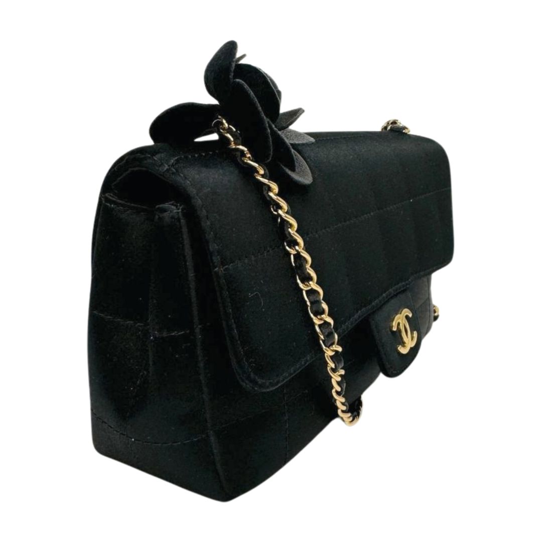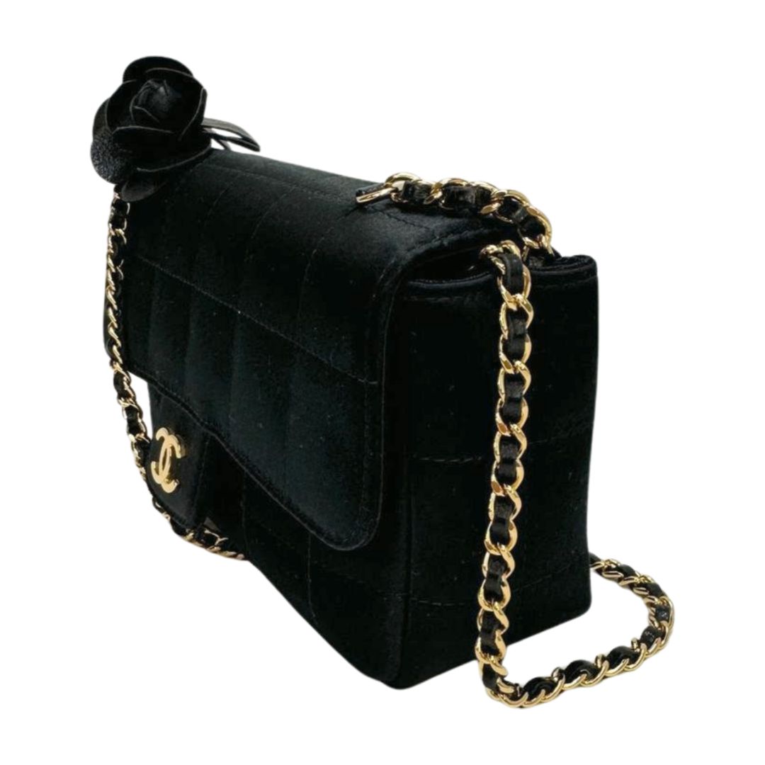 Chanel Quilted Satin Flap Bag Crossbody Black